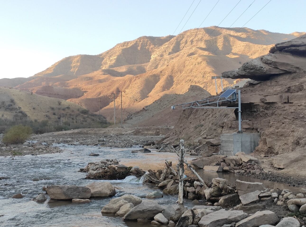 At the Kuykulak site on the Maylisay River, three surface-velocity radars were installed to ensure accurate discharge measurement across the wide riverbed.